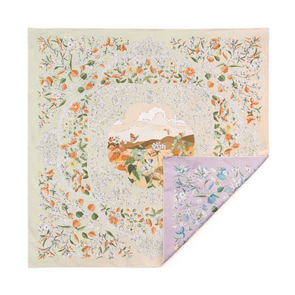 Elevate your look with this luxurious 90x90cm silk twill scarf, made from 100% premium silk and finished with delicate hand-rolled edges. This elegant square scarf brings effortless sophistication to any outfit—whether styled around the neck, worn as a headscarf, or tied to your favorite bag. Silk twill offers a smooth feel with a structured drape, making it perfect for both everyday wear and special occasions.