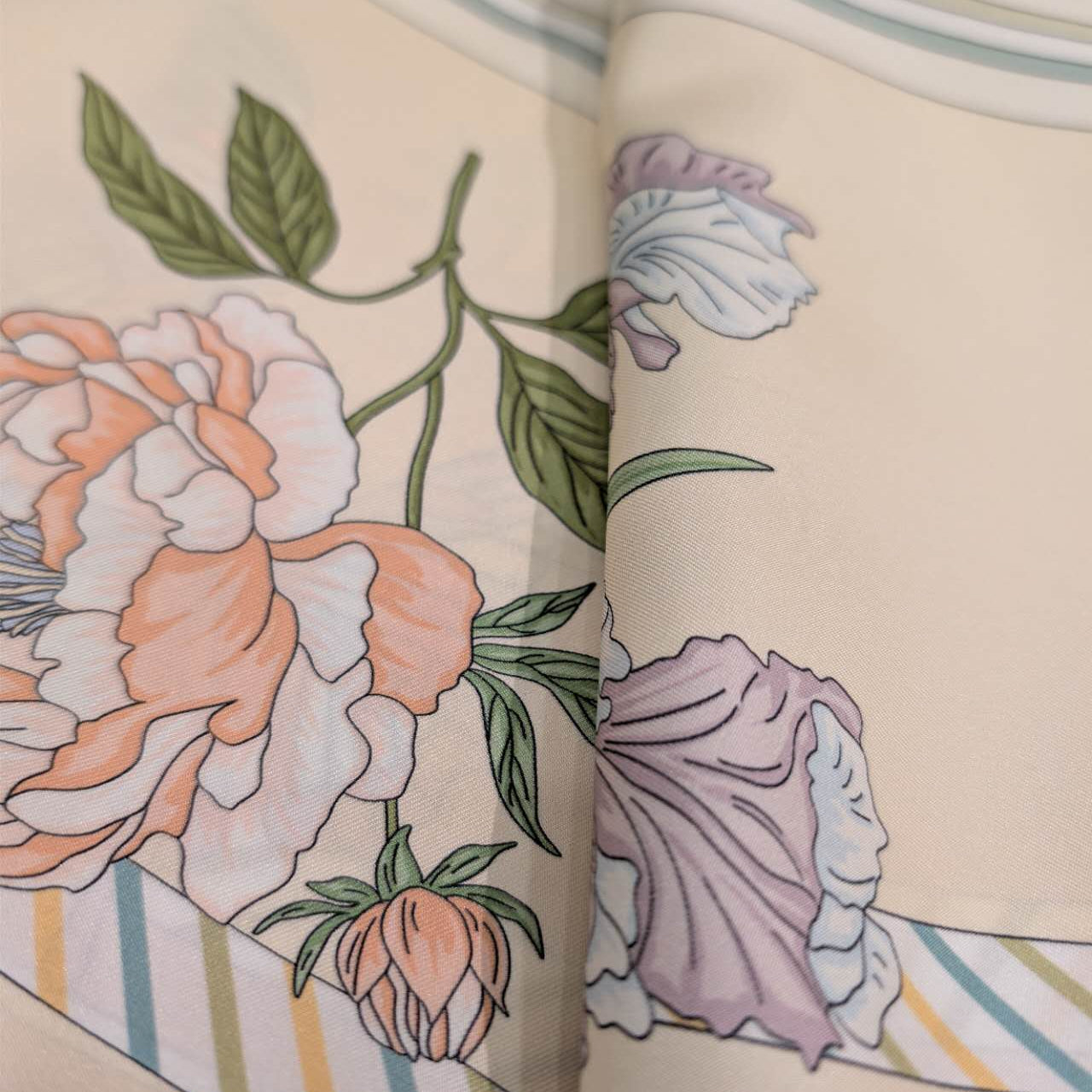 Elevate your look with this luxurious 90x90cm silk twill scarf, made from 100% premium silk and finished with delicate hand-rolled edges. This elegant square scarf brings effortless sophistication to any outfit—whether styled around the neck, worn as a headscarf, or tied to your favorite bag. Silk twill offers a smooth feel with a structured drape, making it perfect for both everyday wear and special occasions.